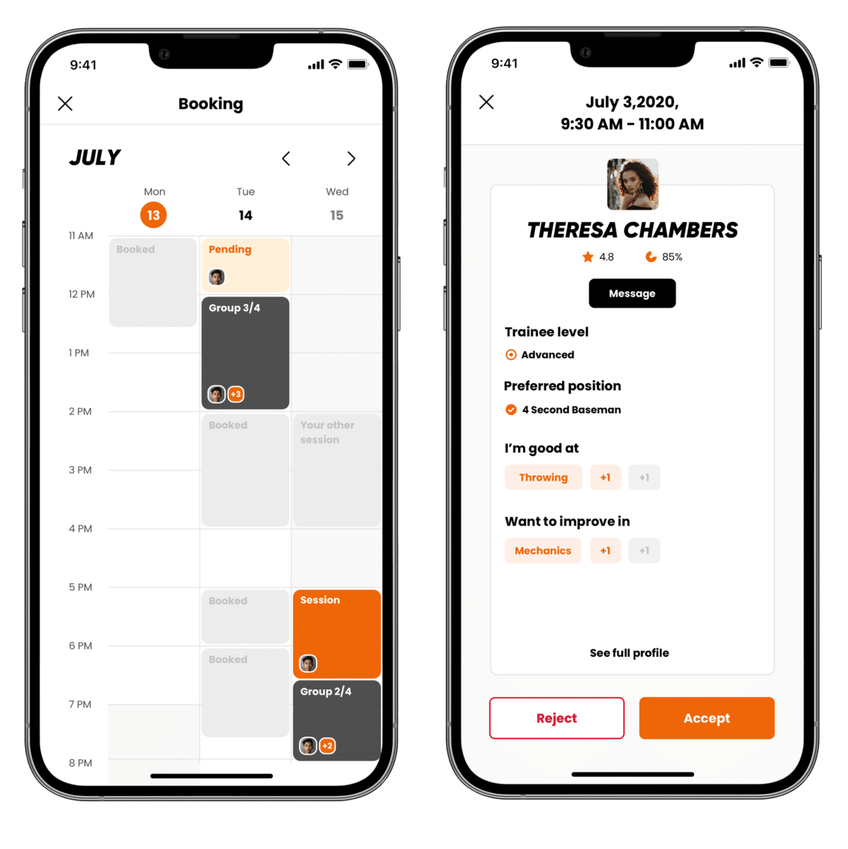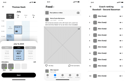 The primary goal of TrainingHub is to create a place where anyone can get coaching and make money doing what they love. The Hub - app's main page lets users see available training slots, next sessions, and upcoming events and connect with other members to make new fit friends!